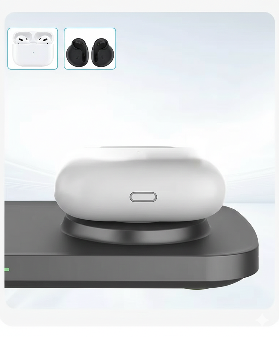 Charge both Apple AirPods and Samsung Galaxy Buds with a single wireless charging spot. Designed for universal compatibility, it delivers stable and efficient charging for earbuds from both brands, no separate chargers required. Simple, convenient, and perfect for multi-brand use.