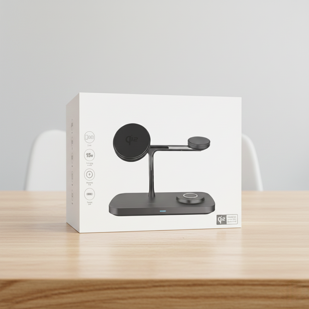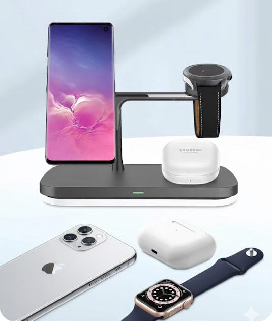 This universal charging station supports all devices with wireless charging. Phones, smartwatches, and earbuds—charge everything together on one clean, powerful, all-in-one base.