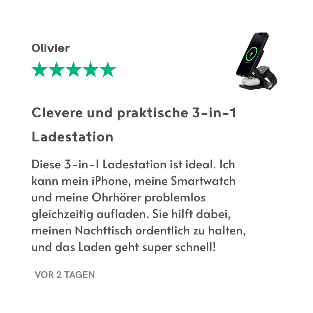 You know that feeling of all those loose cables on your nightstand or desk that make charging your devices a mess? The MagFold™ ensures that all your Apple devices are charged neatly in one place. With its foldable design and powerful charging capabilities, this MagFold™ is an indispensable addition to your (home) office or bedroom.