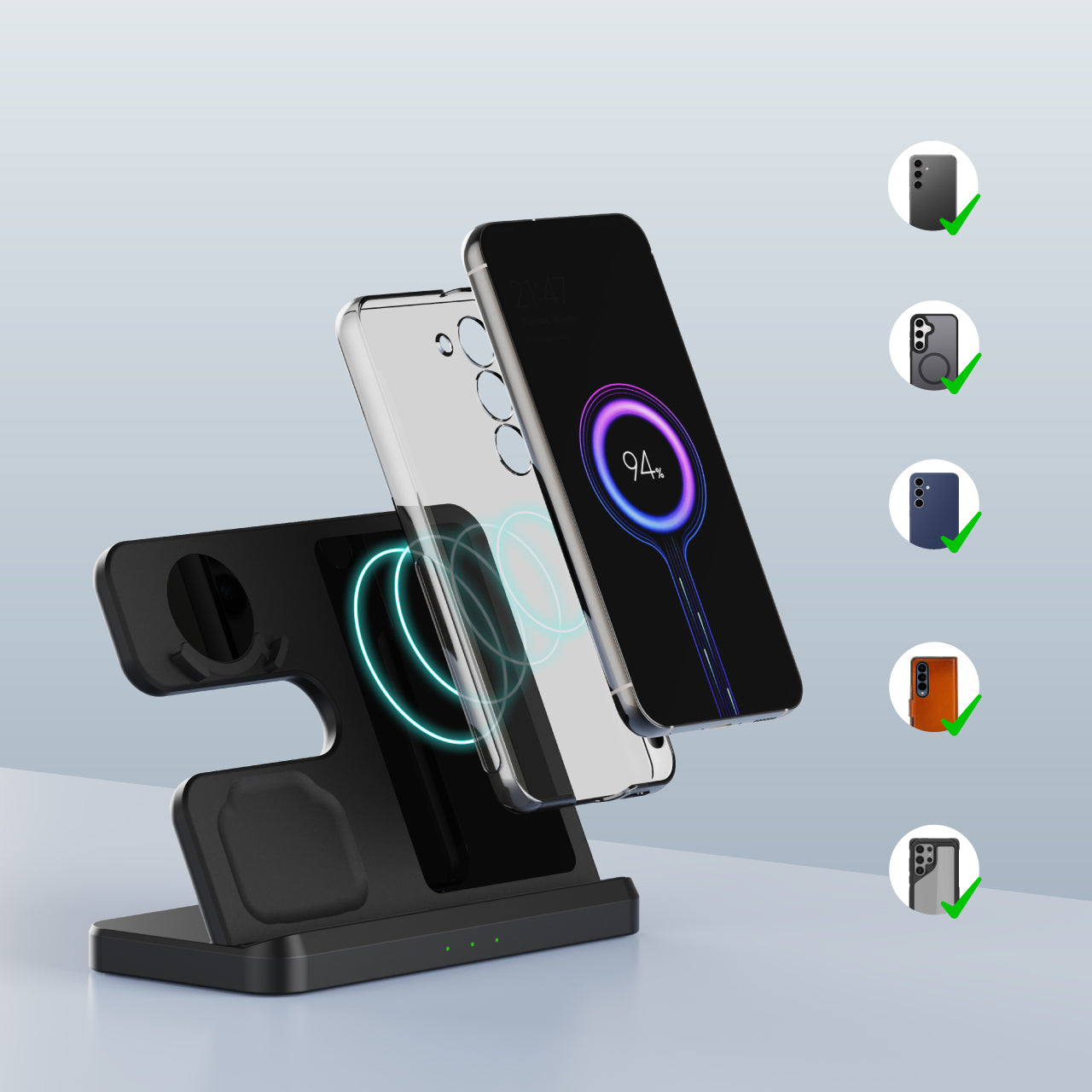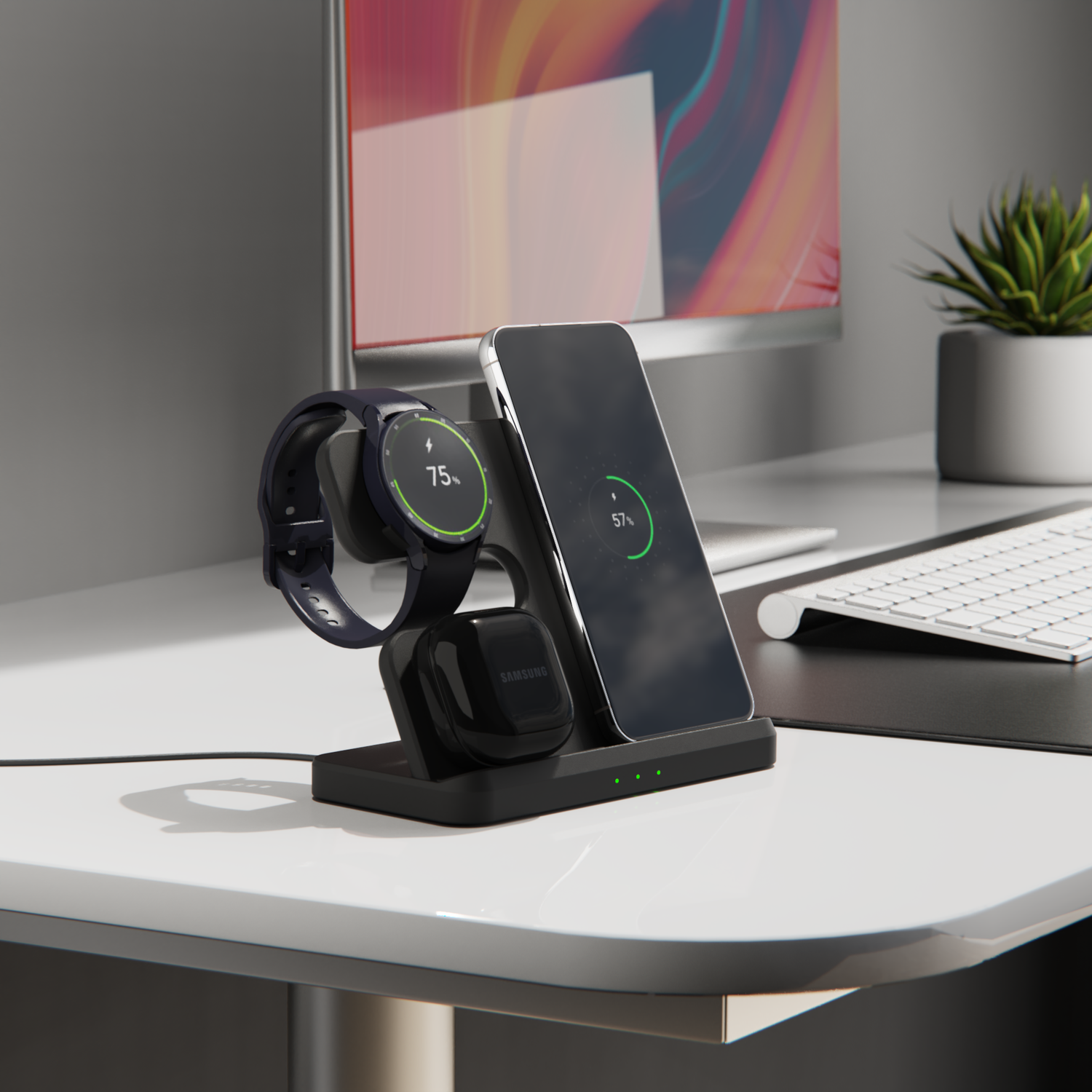 Ken je dat gevoel van al die losse kabels op je nachtkastje of bureau die het opladen van je apparaten een rommeltje maken? De DockCharger Samsungs Pro Edition biedt de oplossing. Deze opladestation zorgt ervoor dat al je Samsung-apparaten netjes op één plek worden opgeladen. Met zijn strakke design en krachtige oplaadcapaciteit is deze DockCharger een onmisbaar accessoire voor je (thuis)kantoor of slaapkamer.