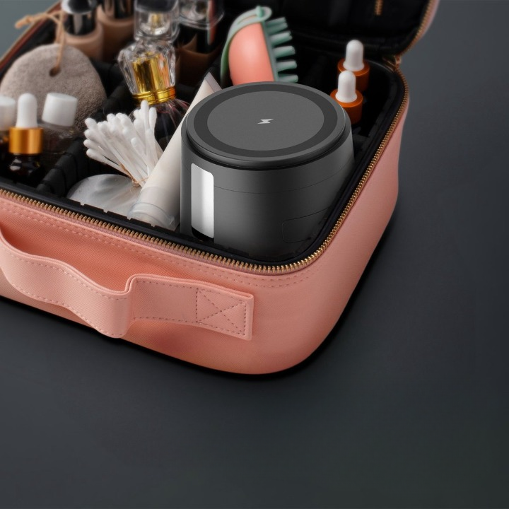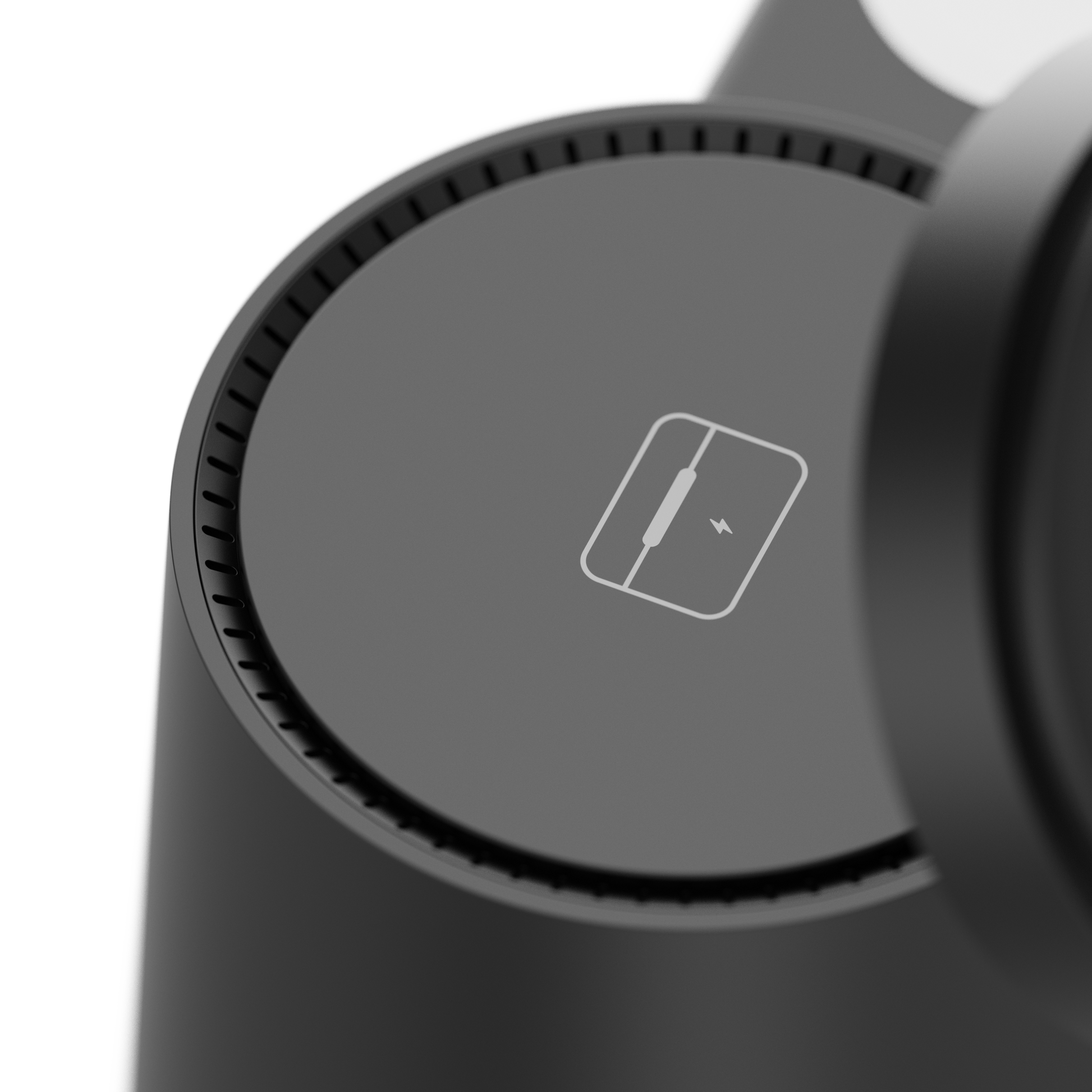 Met een hoogte van slechts 85 mm en een slank cilindrisch design van 65 mm past deze 3-in-1 lader netjes op elk bureau. De ruimtebesparende afmetingen zorgen ervoor dat hij zowel praktisch als draagbaar is, ideaal om je oplaadruimte schoon en georganiseerd te houden.