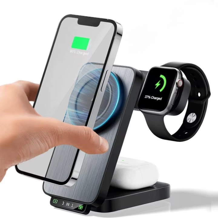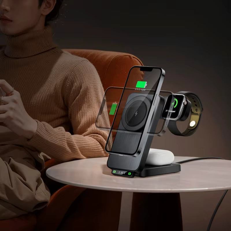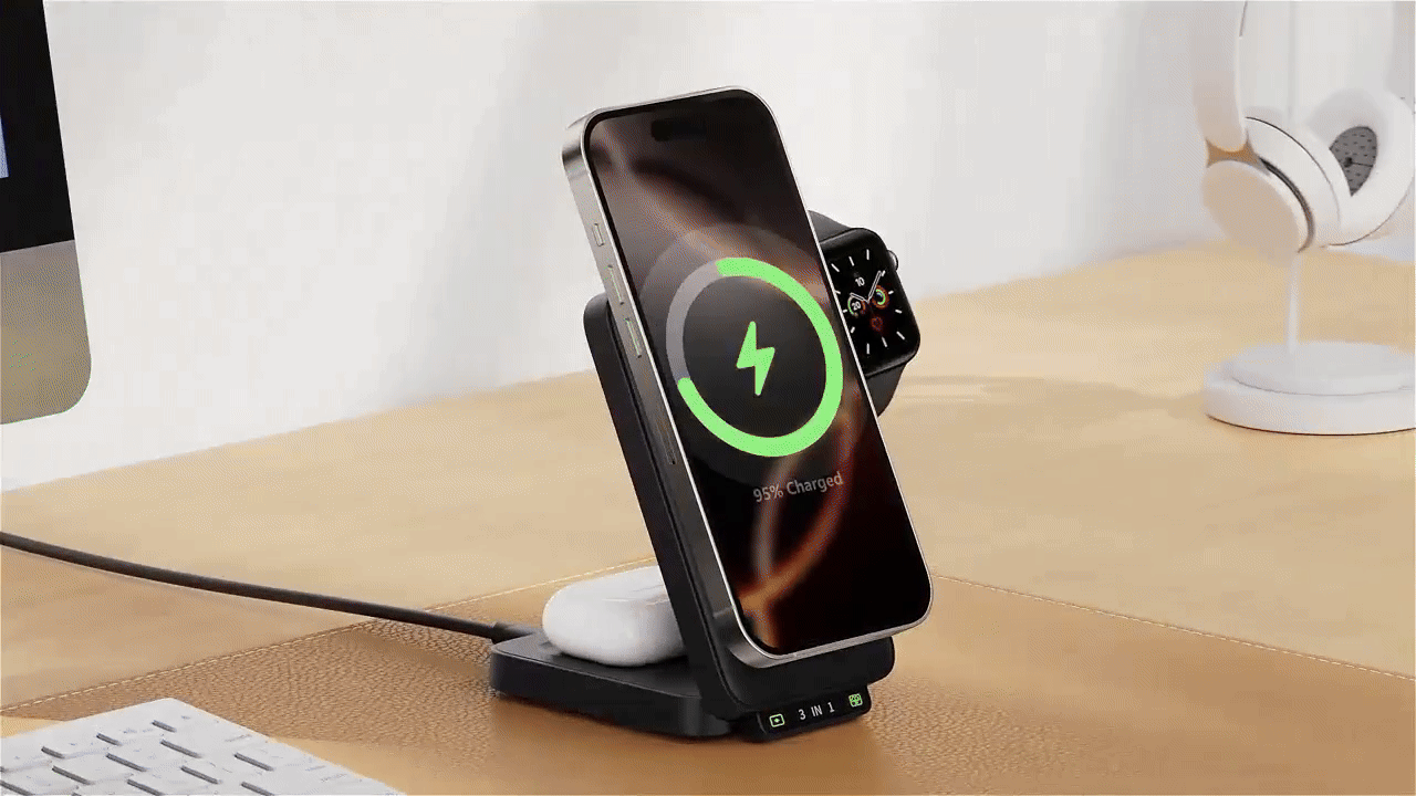 Laad je iPhone, Apple Watch en AirPods gelijktijdig op. Perfect voor thuis, op het werk of onderweg.