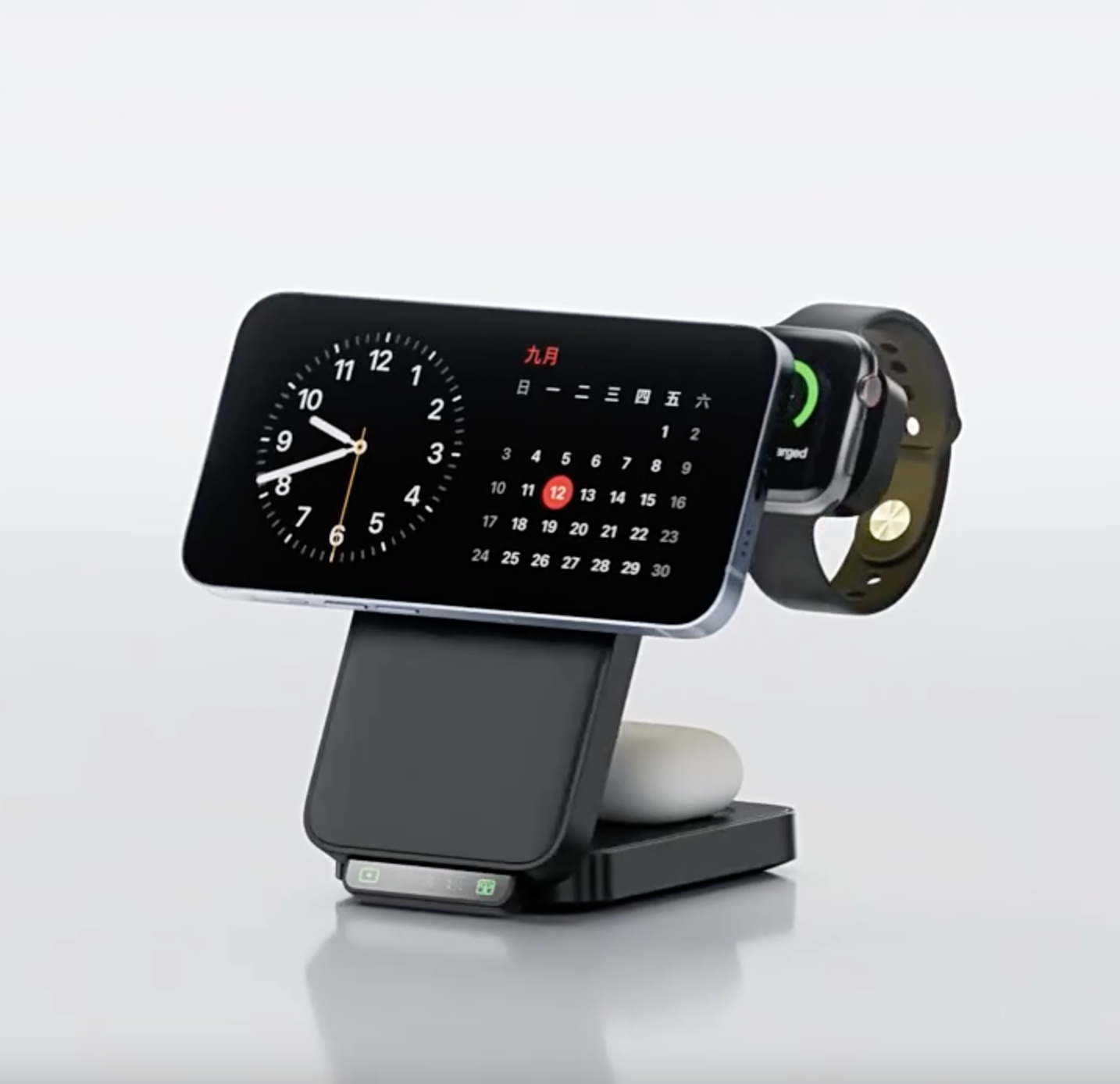 Geniet van de StandBy-modus terwijl je iPhone, Apple Watch en AirPods ’s nachts opladen. Perfect voor op je nachtkastje, zodat je wakker wordt met volle batterijen en een georganiseerde start van je dag.