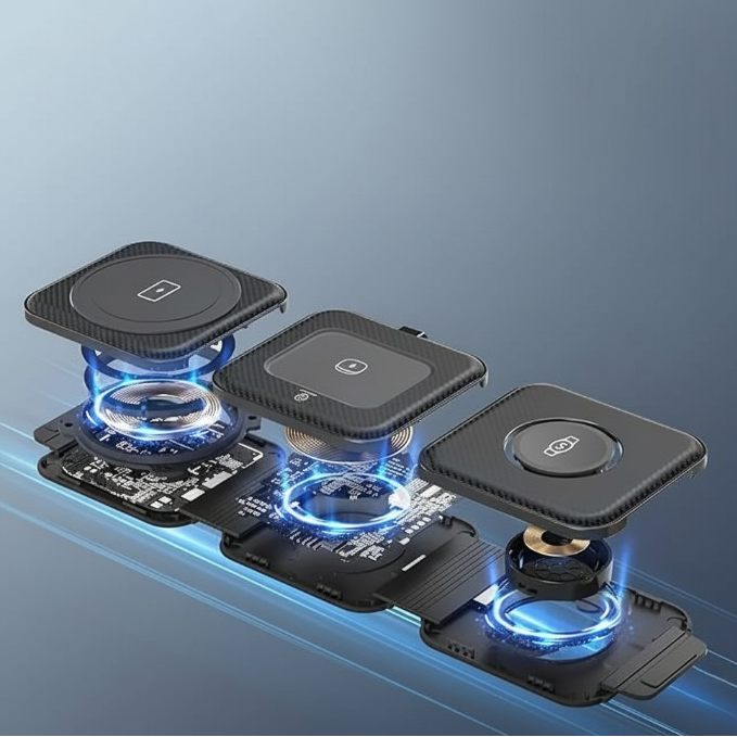 DockCharger is gespecialiseerd in slimme oplaadoplossingen voor Galaxy users. Deze compacte 3-in-1 oplader laadt je Galaxy telefoon, Buds en Watch tegelijk op — perfect voor reizen of dagelijkse routine, met gemak en premium design in één.